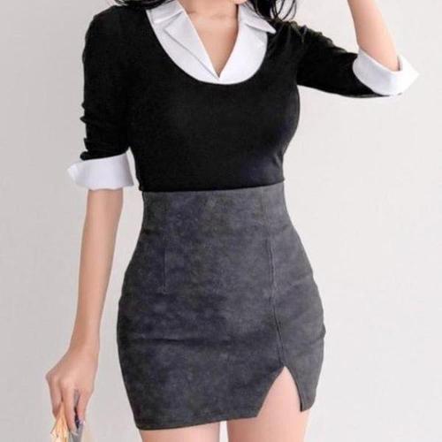[다잇템]여성 콘트라스트 칠부 남방 슬림핏 코디 티