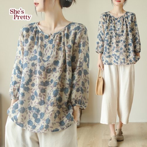 [쉬즈프리티] 란나플라워7부블라우스 L까지_여성블라우스