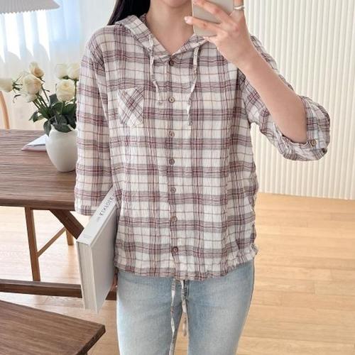 [브이와이][VY] 여자 격자 칠부 SS 스트랩 수학여행룩 후드남방 셔츠_16505011_588847
