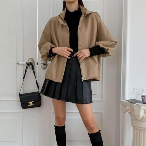 [브이와이][VY] 여성 후드탈부착 폴라넥 박시핏 7부스트링 인조가죽 자켓_15885347_588847