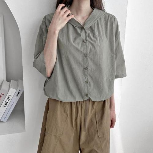 [엄지척]고급 면 여성 코튼 7부 후드티셔츠 상의 무지 면티_19627010_667501