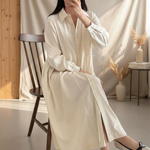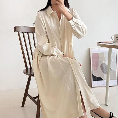 [옷자락] 여성 투웨이 긴셔츠 카라넥 77사이즈 봄철 롱드레스