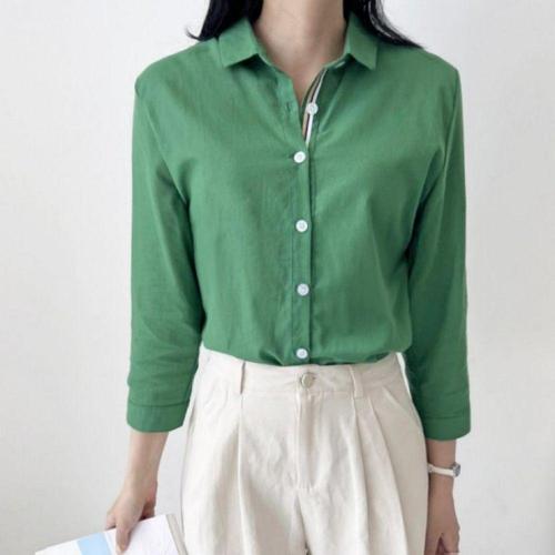 [엄지척]심플 베이직 여자 린넨 8부 데일리 셔츠 블라우스_19652124_667501