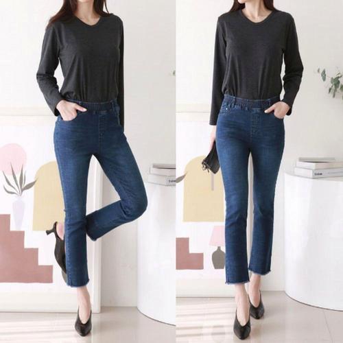 [오너클랜]인기상품 롱다리 허리밴딩 청바지 밑단 컷팅 여자 8부데님 스판 [WFLNIXL_260129]