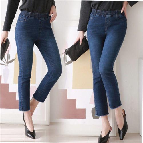 스판청바지 여자 8부 스판 데님팬츠 허리밴딩 청바지 WFJHPQQ