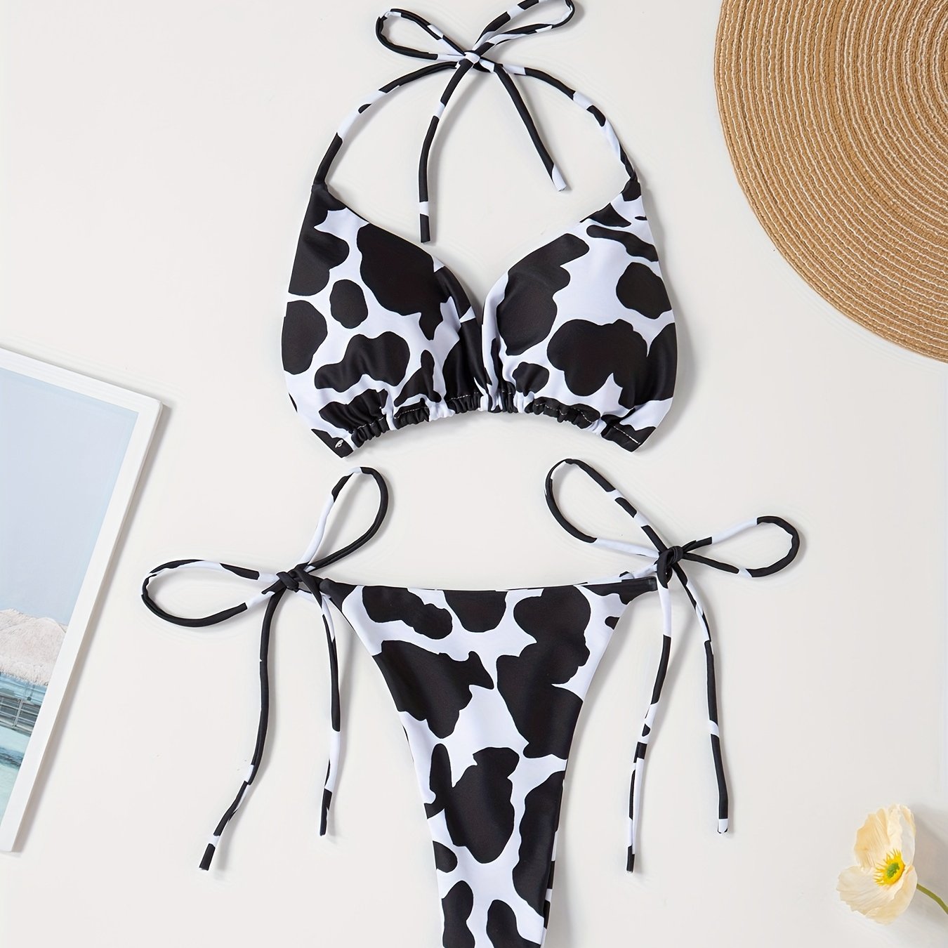 TEMU 새로운 유럽 및 미국 기하학 프린트 섹시한 기질의 여성용 패션 비키니 수영복