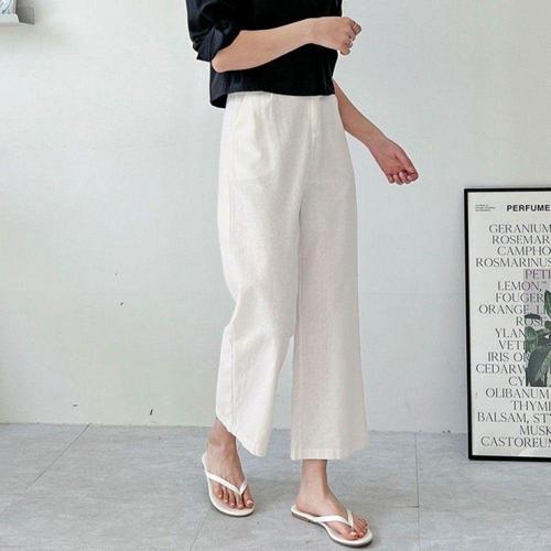 [오너클랜]인기상품 여름용 린넨 와이드 팬츠 9부 직장인 데일리 얇은 캐주얼 바지 [WFLL7OP_260304]