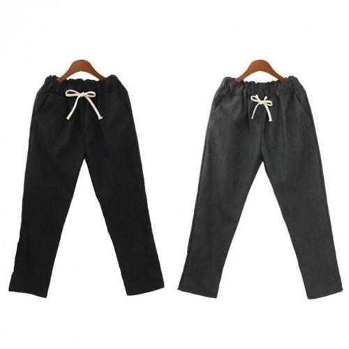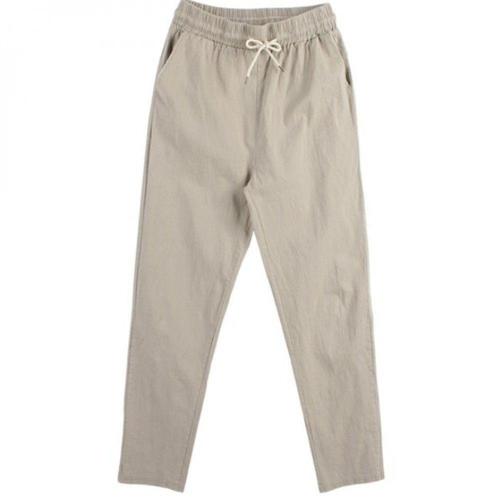 9부 코튼린넨 배기바지 여름 여성 고무줄 밴딩 면바지