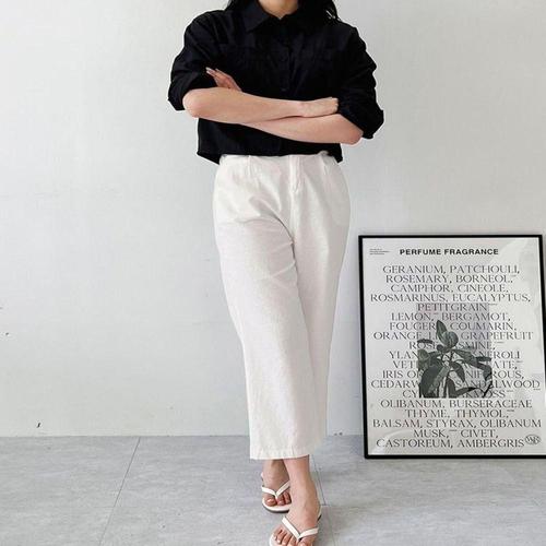 [오너클랜]인기상품 여자 팬츠 여름 시원한 주름 밴딩 9부 통바지 와이드 [WFLNMDG_260205]