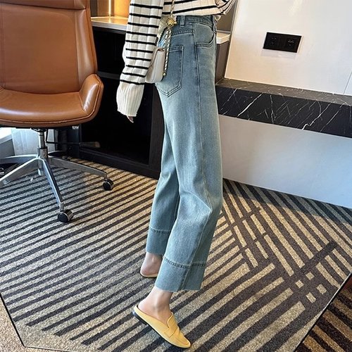 [QN3S4X9C_55]연청 데님 데님통바지 캐쥬얼 9부 ST-0904