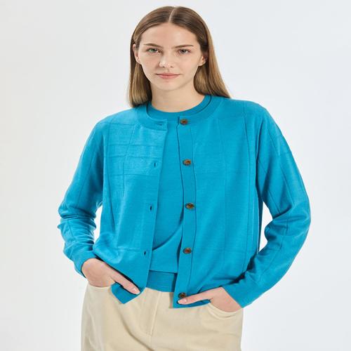 블루 솔리드 울실크 체크패턴 라운드 가디건 (DLSW5D917B2)