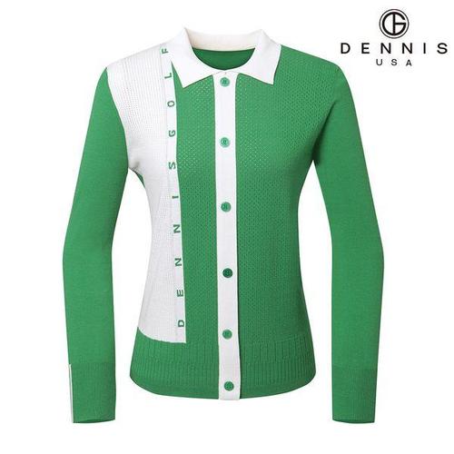 [데니스골프]26SS신상 여성 울 블렌디드 쁘띠카라 레터링 니트가디건_HD4SLSP993