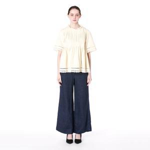 [미라클세븐]여성 리본 장식 프릴 밴딩 셔링 A라인 블라우스 노란색 하늘색 나시