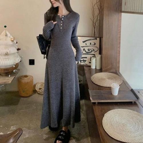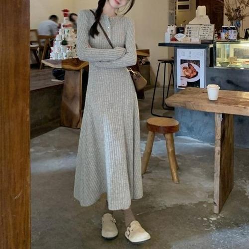 [엄지척]여자 슬림핏 라운드넥 니트 A라인 롱 원피스 일체형_19914314_667501