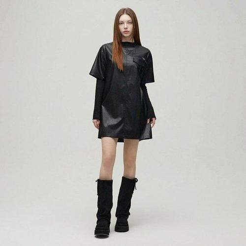 슈가 프릴 시스루 A라인 루즈핏 샤 뷔스티에 레이어드 끈 미니원피스 (2color)