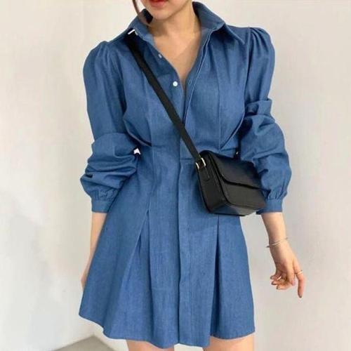 [오너클랜]인기상품 여성 카라셔츠 퍼프소매 핀턱 A라인 미니원피스 하객룩 [WFLN36K_260210]