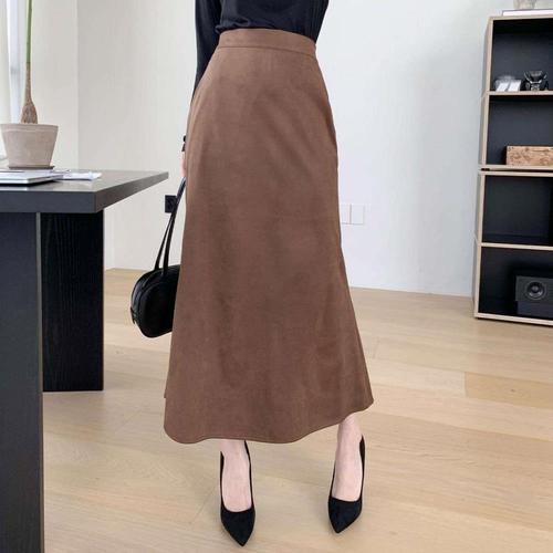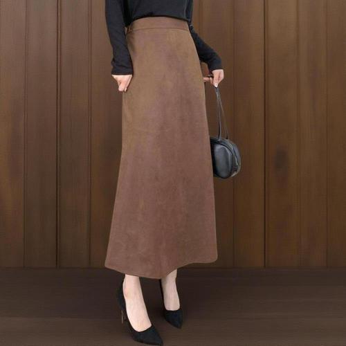 [신상오픈런]여성 스웨이드 포근한 A라인 뒷밴딩 긴 치마