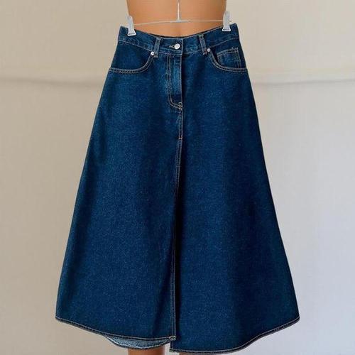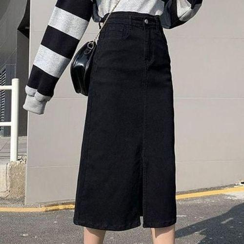 [신상오픈런]여자 언발 앞트임 A라인 포켓 청치마 뒷밴딩 롱스커트