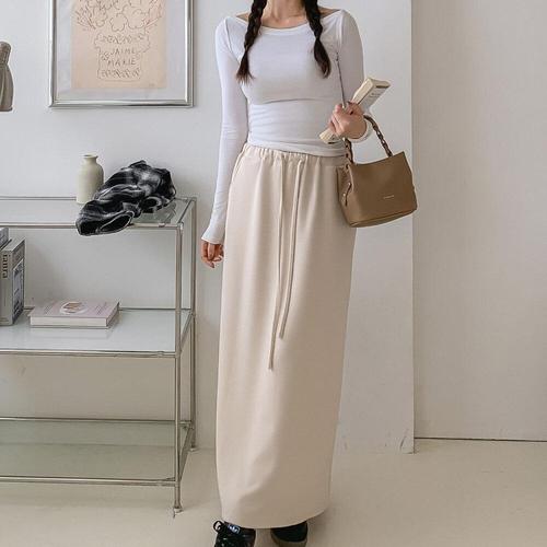 [옷자락] 여자 뒤트임 A라인 무지 끈밴딩 휘뚜루 가을 롱스커트