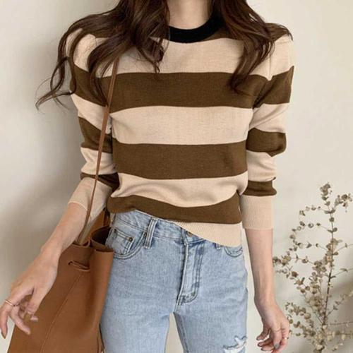 [주식회사 브이와이][JHQRJR2C_4B]스트라이프 티셔츠 넥 배색포인트 청바지코디 (24026152A)