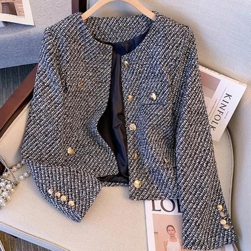 2026 트위드 코리아 고품질 숏 트위드 재킷 여성 한국 의류 싱글 브레스티드 레이디 블레이저 올매치 캐주얼 코트 탑