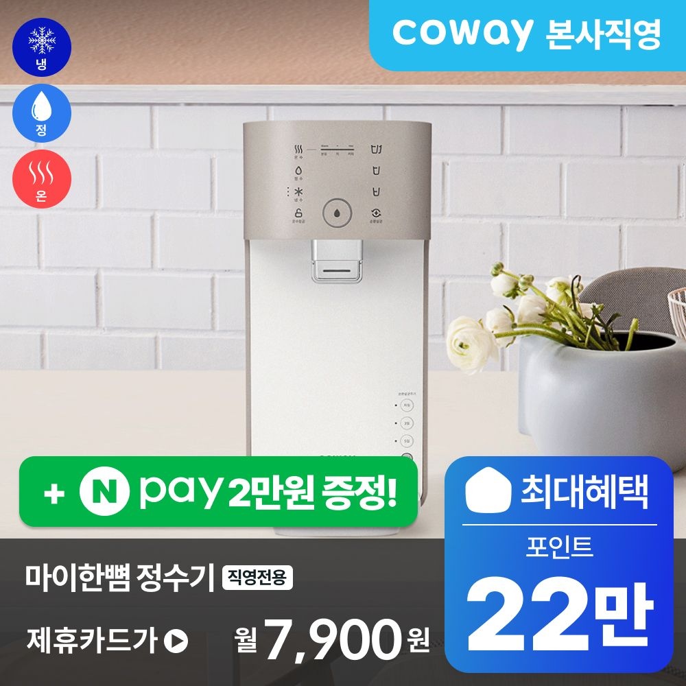 핸디형 12개월 반려 정수기 작지만 강한 진짜 스마트 직수 냉온수 정화기 무타공 무전원