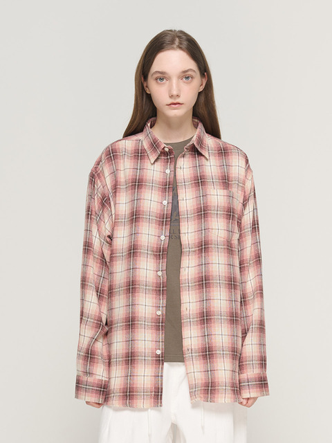 [카고브로스] 플란넬 기모 체크 오버핏 셔츠 (핑크)