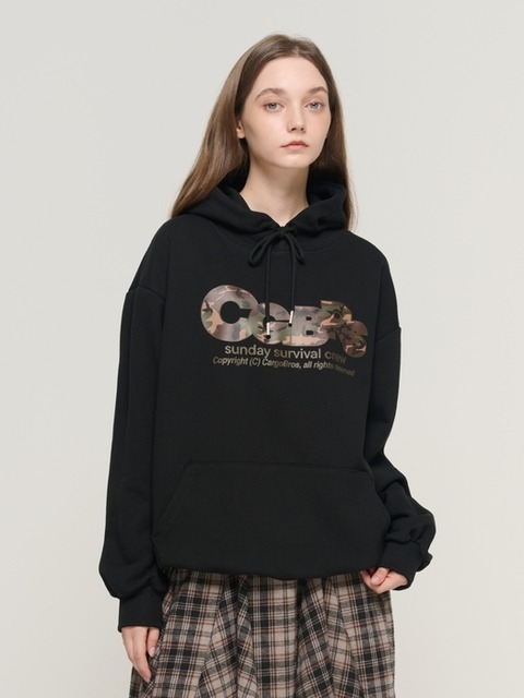 [카고브로스] 카모 패턴 로고 후드 티셔츠 (블랙)
