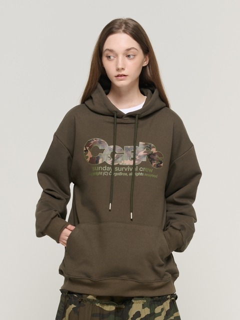 [카고브로스] 카모 패턴 로고 후드 티셔츠 (카키)