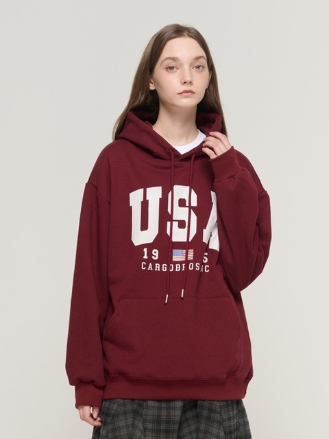 [카고브로스] 아메리칸 로고 후드 티셔츠 (와인)