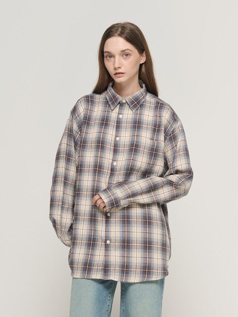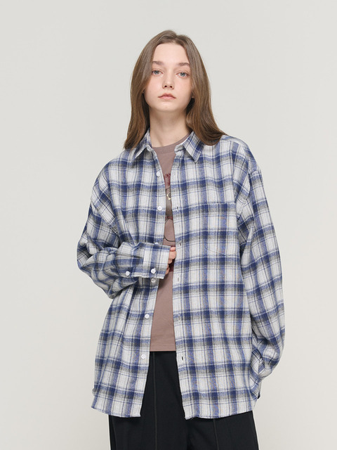 [카고브로스] 플란넬 기모 체크 오버핏 셔츠 (블루)