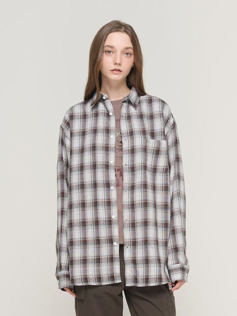 [카고브로스] 플란넬 기모 체크 오버핏 셔츠 (브라운)
