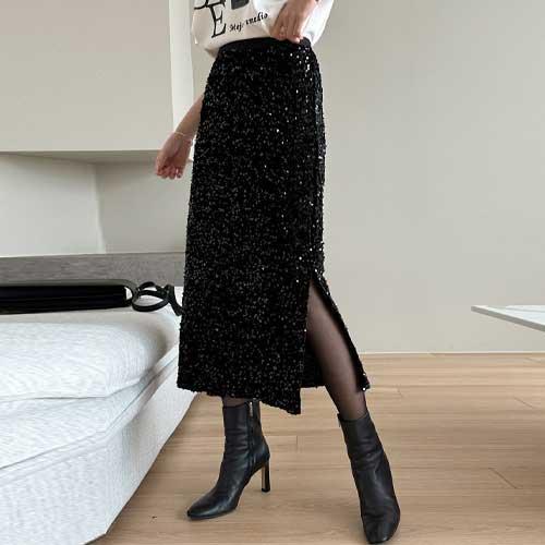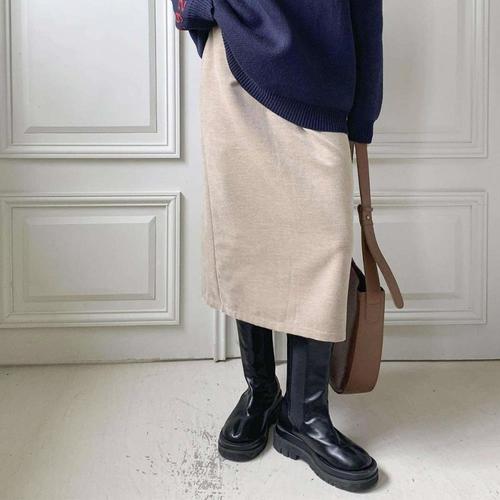 [신상오픈런]여성 스웨이드 기본 트임 H라인 밴딩 긴 치마