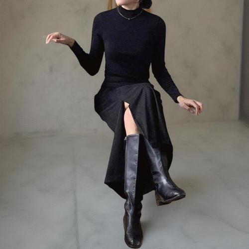 [신상오픈런]여성 H라인 슬릿 롱스커트 가을 모던 스타일