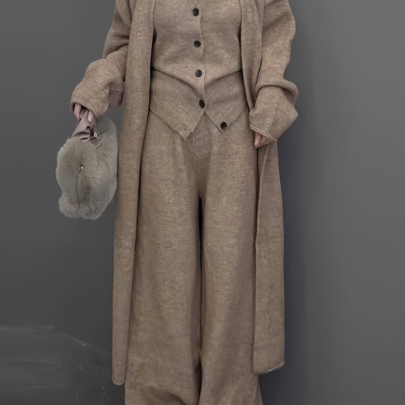 TEMU 가을-겨울 패셔너블 오버사이즈 재킷 & 와이드 레그 팬츠 세트