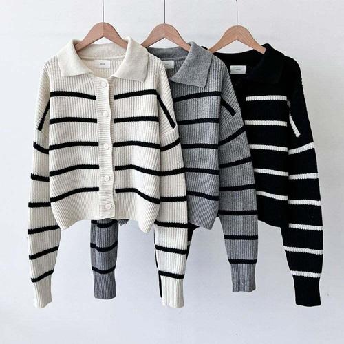 [JED] 티셔츠 니트티 간절기 브이넥 긴팔 스트라이프 니트 슬림핏 여성 중년