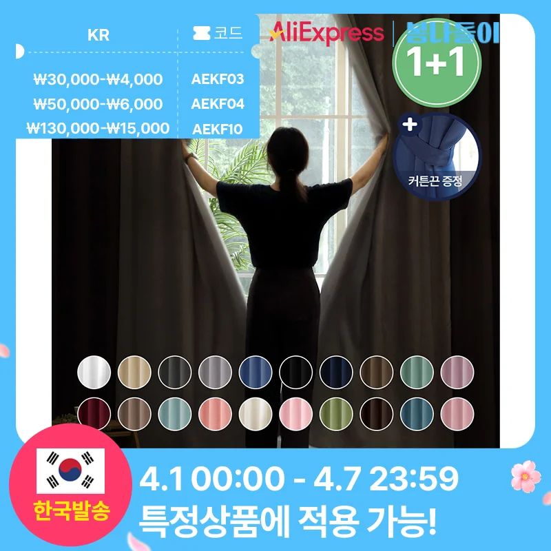 thezari 더자리 1+1 방한 방풍 프리미엄 암막커튼 핀형/아일렛형 커튼끈 증정 4size 15color