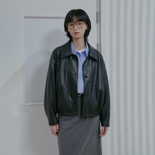 [랩]LAP 랩 [인플루언서 착용]박시 카라 페이크레더 점퍼 AS1LZ260_DG