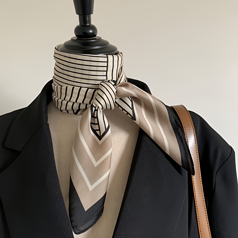 TEMU 기하학 프린트 카키 스카프 - 가볍고 따뜻한 사계절용 멀티넥타이 숄, 우아하고 젊은 스타일의 오피스 & 캐주얼 액세서리, 체브론 디자인 스카프 | 경량 목도리