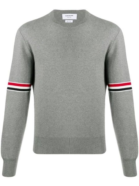 톰브라운 MKA326A Y3001 055 밀라노스티치 RWB 암밴딩 풀오버 크루넥 스웨트 라이트그레이 남성 니트