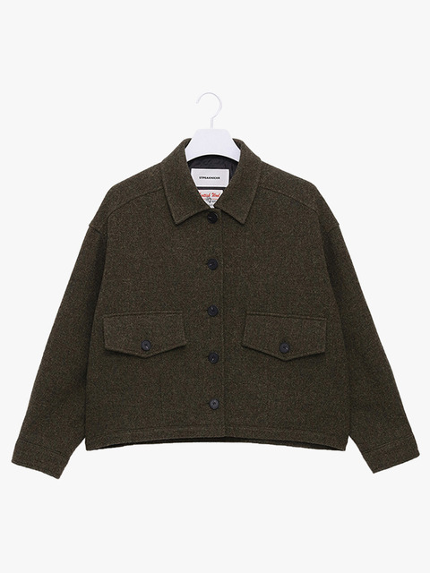 [에스피엔케이] 스코티쉬울 셔츠카라 트위드 자켓 카키