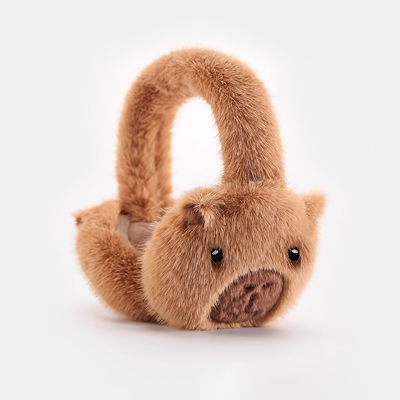 TEMU 1개 귀여운 카피바라 귀마개 - 플러시, 카피바라 모양 귀와 푹신한 꼬리 같은 땋은 머리 장식, 따뜻한 겨울 귀 보호 (손세탁 전용) - 동물 테마 코스튬 액세서리 & 크리스마스
