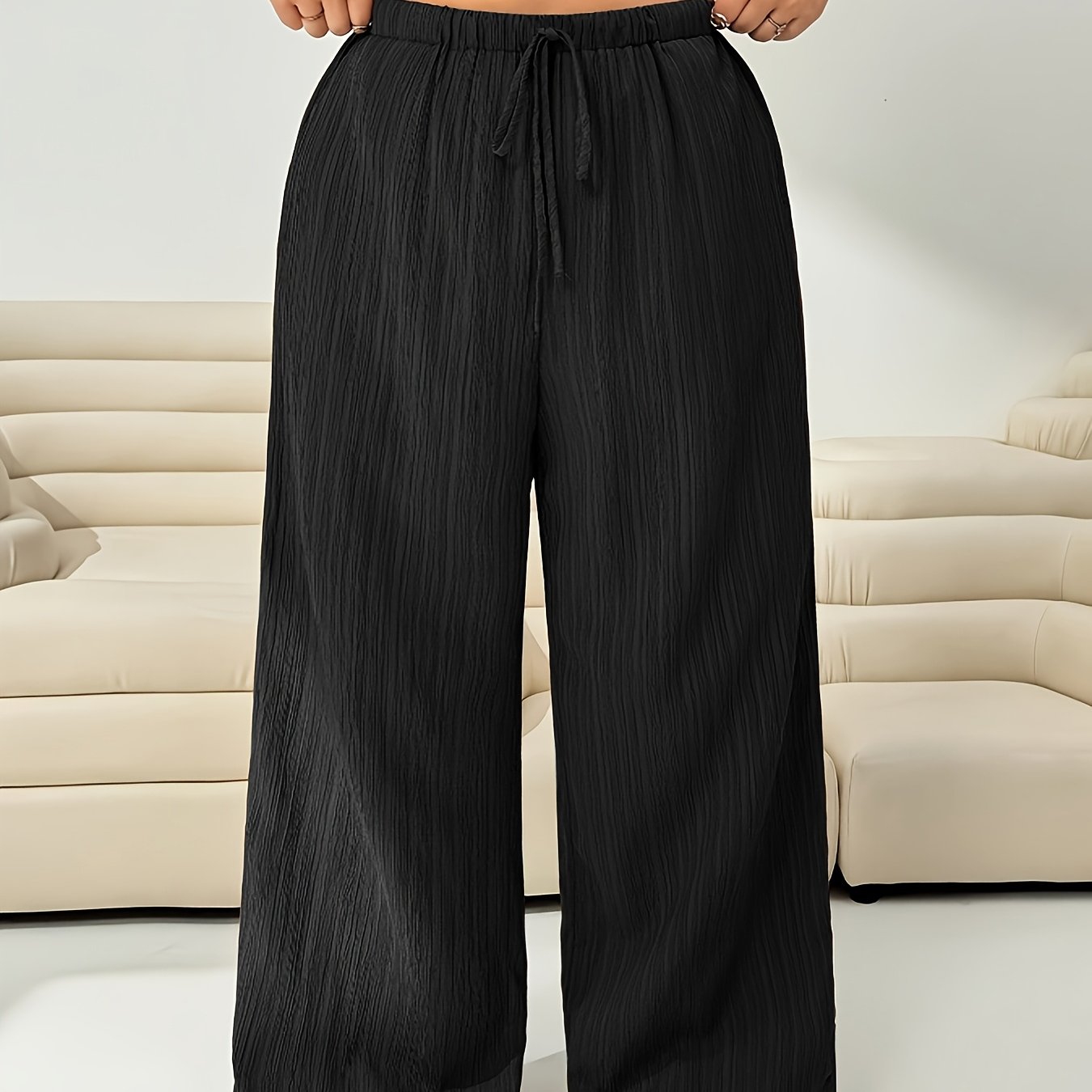 TEMU 플러스 사이즈 - 플러스 사이즈 - 플러스 사이즈 여성 솔리드 컬러 캐주얼 와이드 레그 팬츠 FS1001