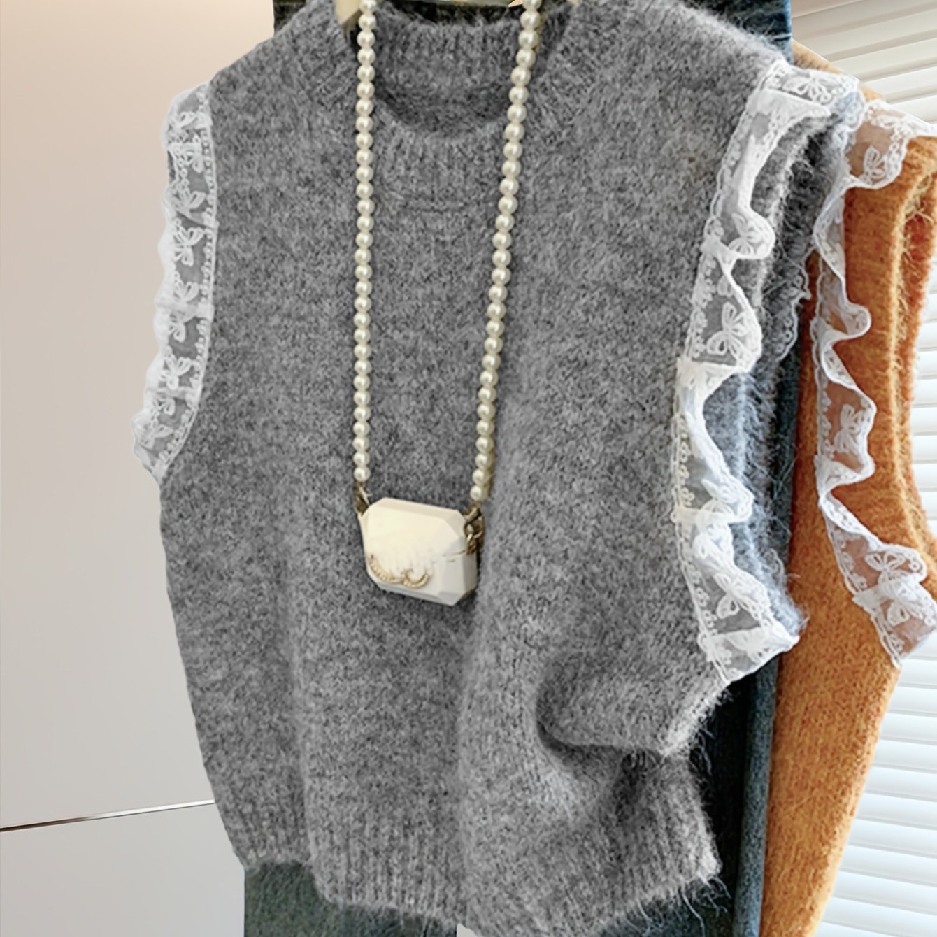 TEMU 가을/겨울 여성용 솔리드 컬러 오픈 프론트 베스트 스웨터, 패셔너블 여성 스웨터 베스트, 특별 디자인 스타일