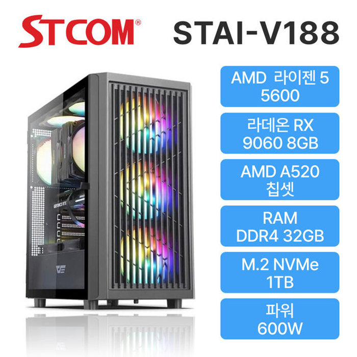 STCOM STCOM 조립피씨 5600 RX 9060 XT 32GB 1TB 게이밍 사무용 조립PC 컴퓨터 STAI-V175
