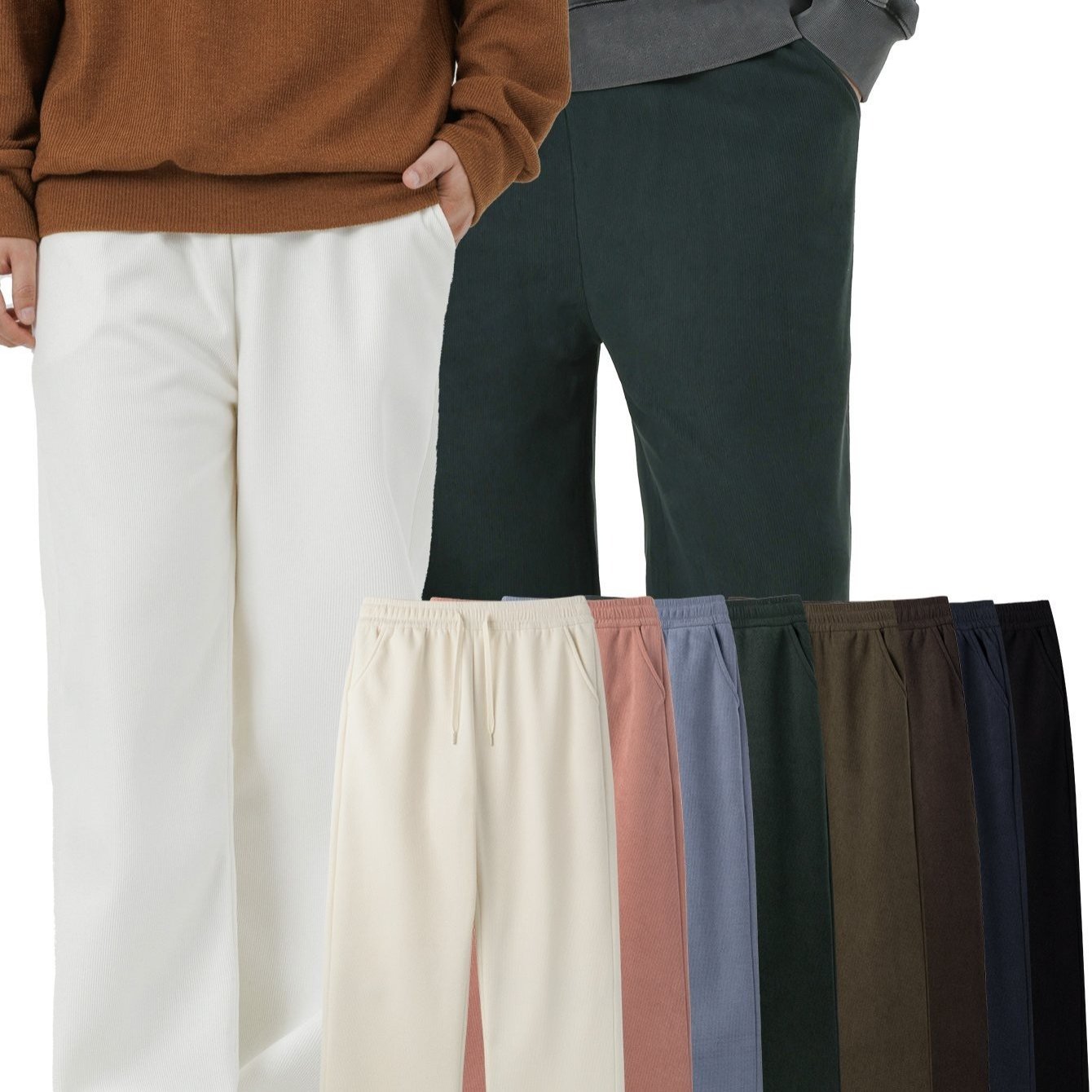 TEMU 미국 스타일 롤업 헴 코듀로이 캐주얼 팬츠 남녀공용, 겨울 트렌디 레그 팬츠, 레이지 스타일 Y 롱 팬츠