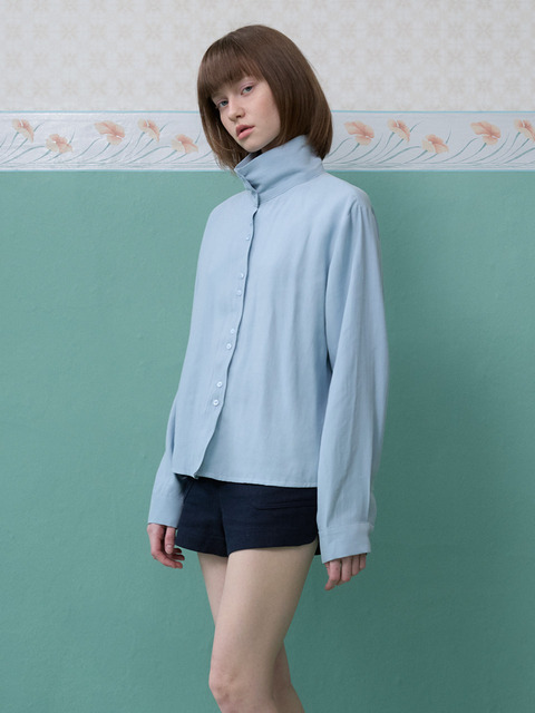 ZARA 하이넥 셔츠 - 블루