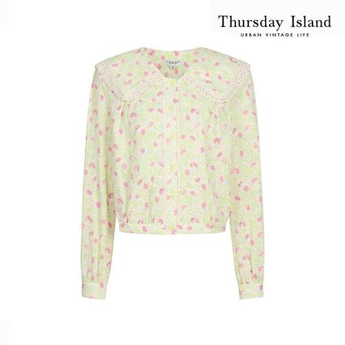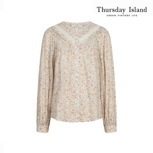 [써스데이아일랜드]레이스 스퀘어넥 패턴 블라우스(T244MBL242W)