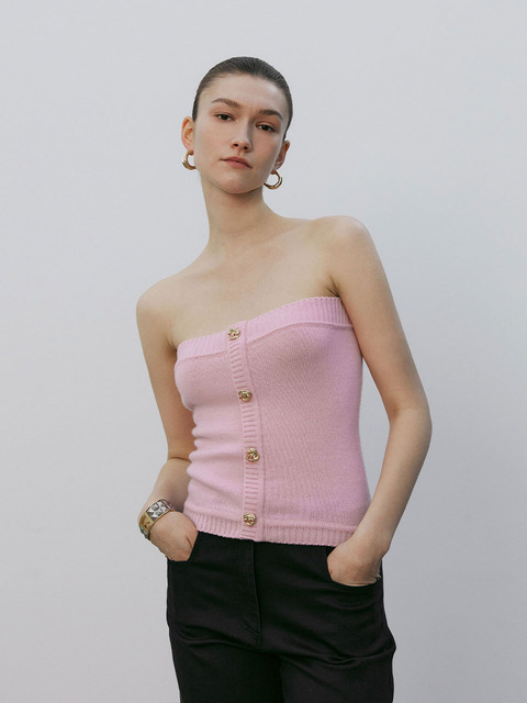 [마레디마리] Asymmetric Gold Button Buistier Knit Top Pink