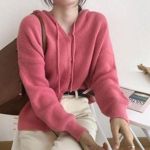 MS HOME 여성 후드 니트 브이넥 데일리 베이직